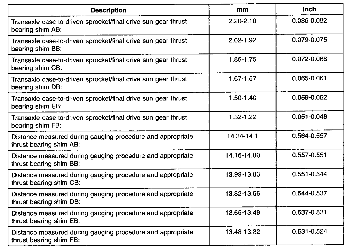 Band and Clutch Application Chart B
