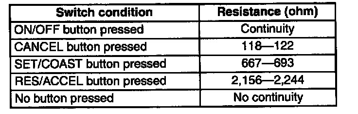 Home >> Mazda >> 2006 >> 3 L4-2.3L >> Repair and Diagnosis >> Cruise Control >> Cruise Control Switch >> Testing and Inspection