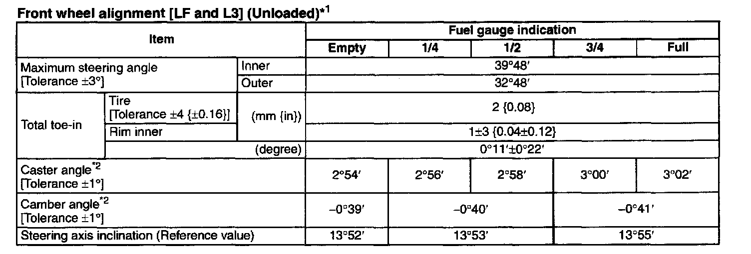 FRONT WHEEL ALIGNMENTFront wheel alignment [LF and L3] (Unloaded) *1