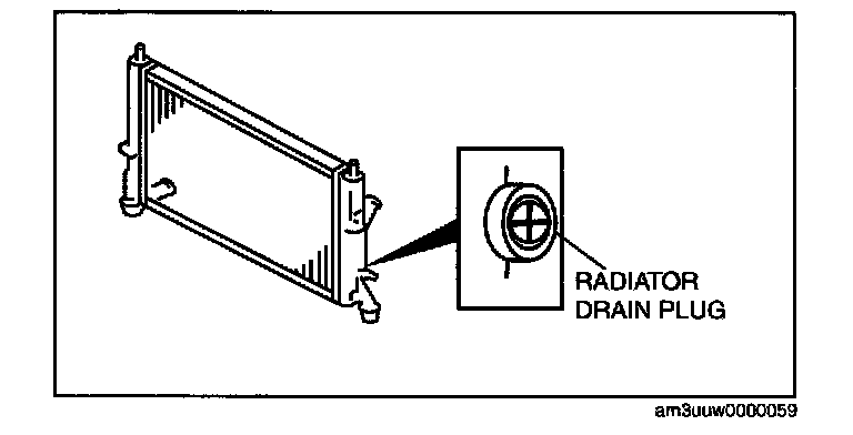 3. Remove the radiator drain plug and drain the engine coolant into a container.