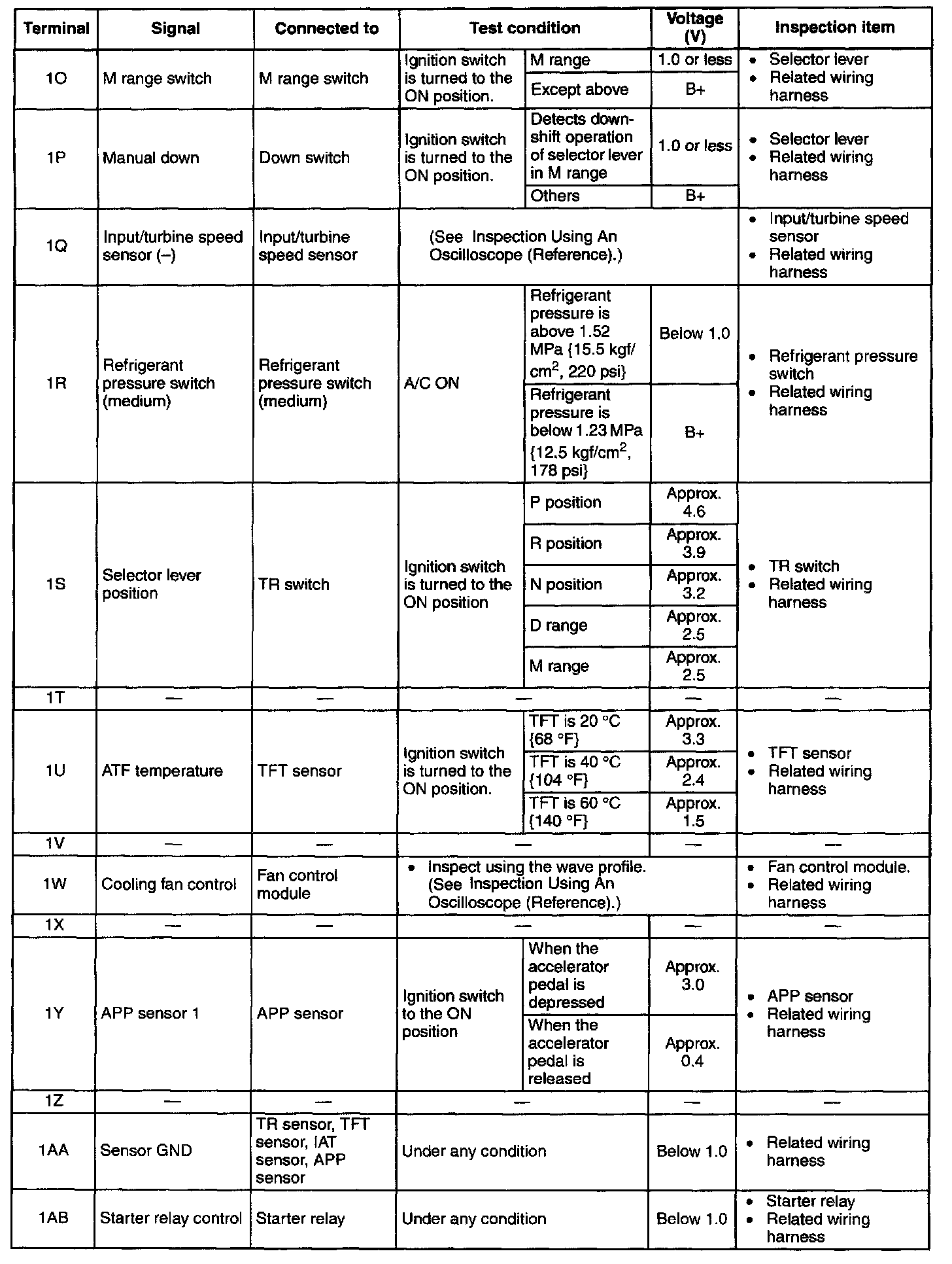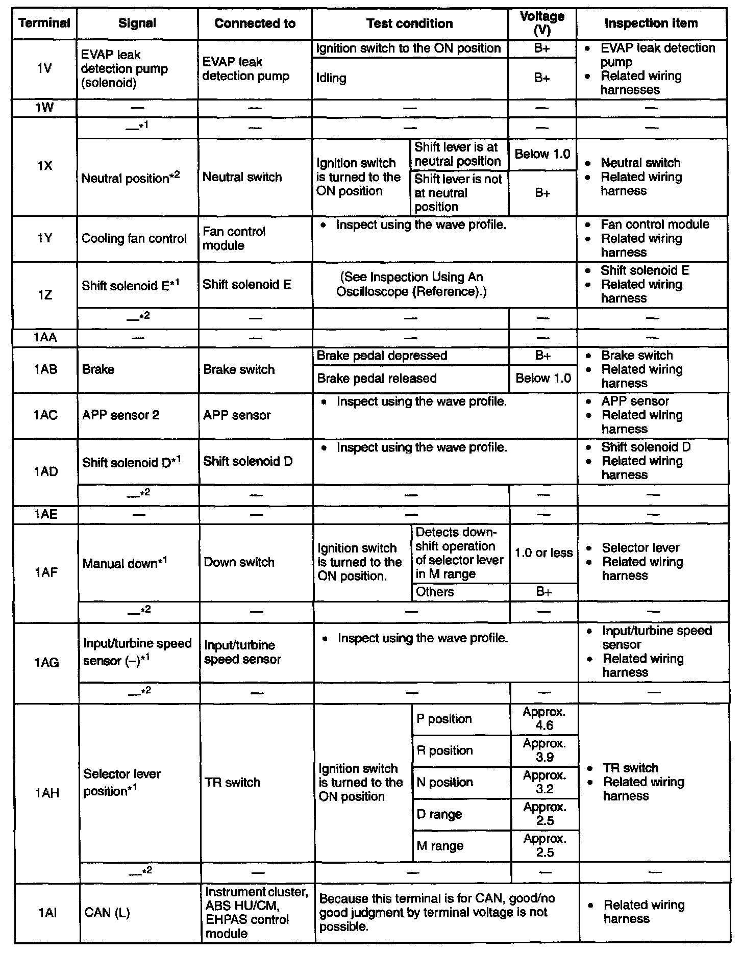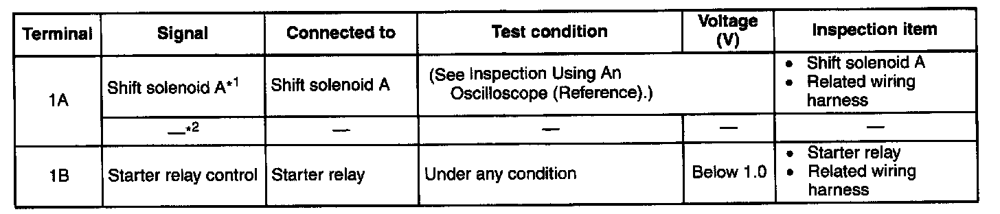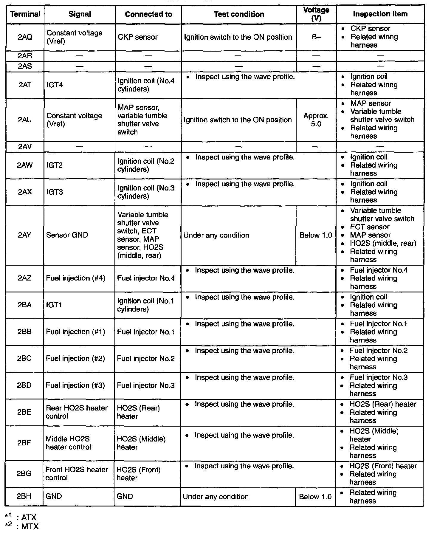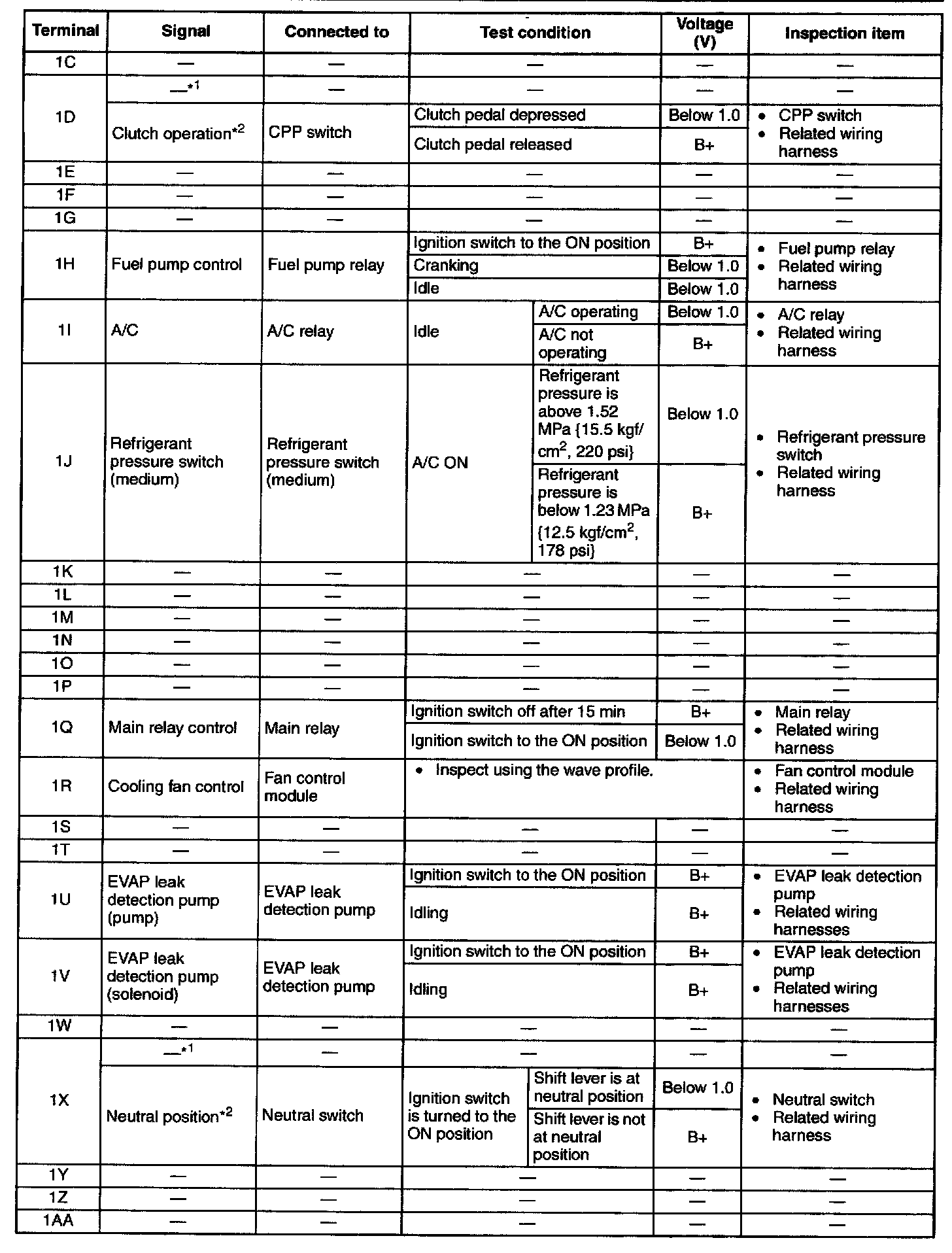 NOTE: The PCM terminal voltage can vary with the conditions when measuring and changes due to aged deterioration on the vehicle, causing false diagnosis. Therefore determine comprehensively where the malfunction occurs among the input systems, output systems, and the PCM.