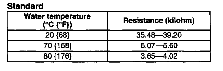 3. Place the ECT sensor in the water and while increasing the water temperature, measure the resistance between ECT sensor terminals A and B.
