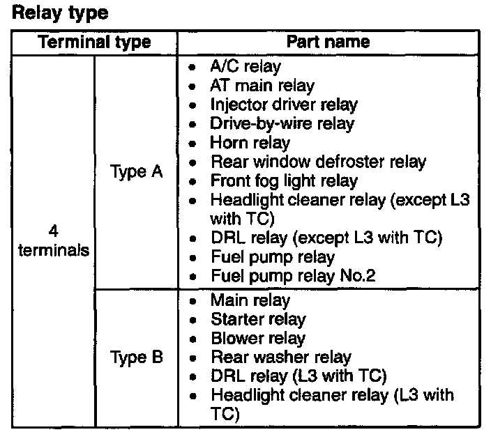 If not as indicated in the table, replace the relay.