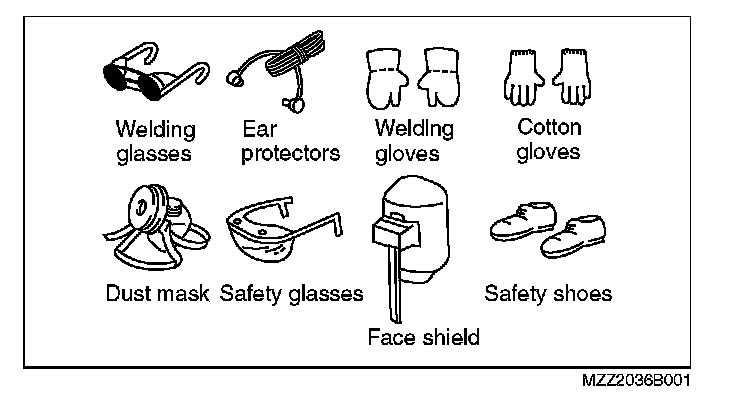 - Protective head covering and safety shoes should always be worn. Depending upon the nature of the work, gloves, safety glasses, ear protectors, face shield, etc., should also be used.