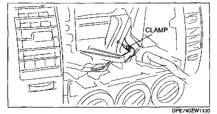 6. Remove the wire clamp with air mix wire and airflow mode wire from the A/C unit.
