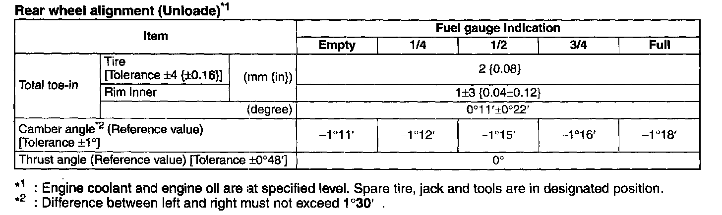 Rear wheel alignment (Unloaded)*1: