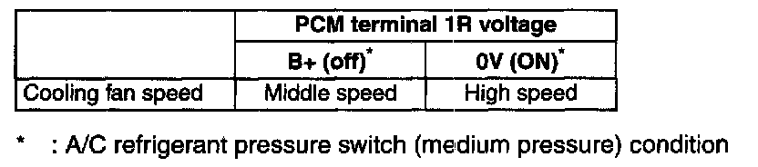 6. Verify the cooling fan operates while the A/C switch to ON with the ignition switch at ON position.