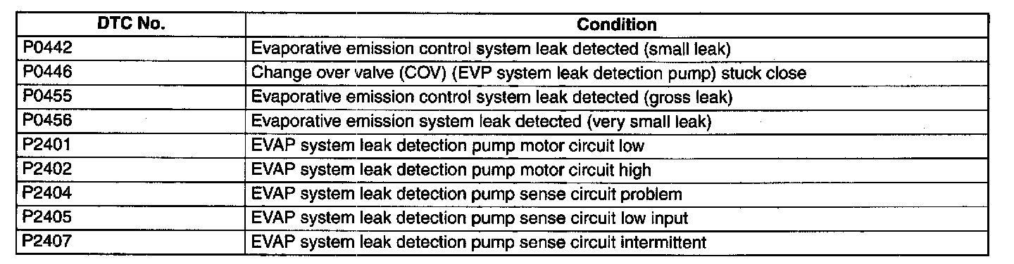 DTC P0442-P2407: