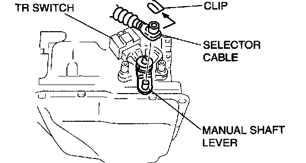 4. Remove the clip and disconnect the selector cable.