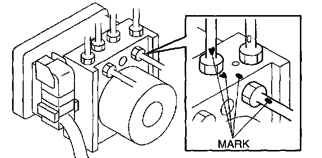 1. Place an alignment mark on the brake pipe and ABS HU/CM.