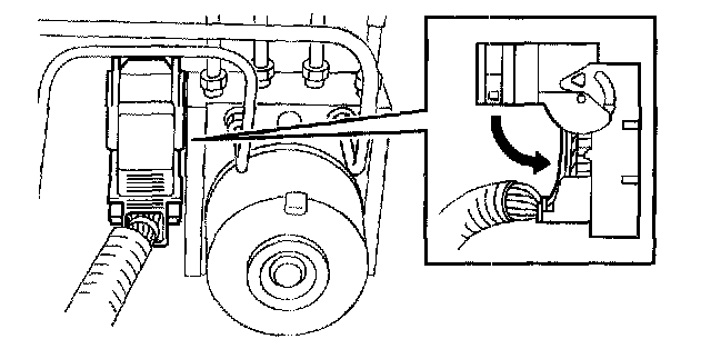 1. As shown in the figure, move the bracket in the direction of the arrow and remove the ABS HU/ CM component and bracket from the body.