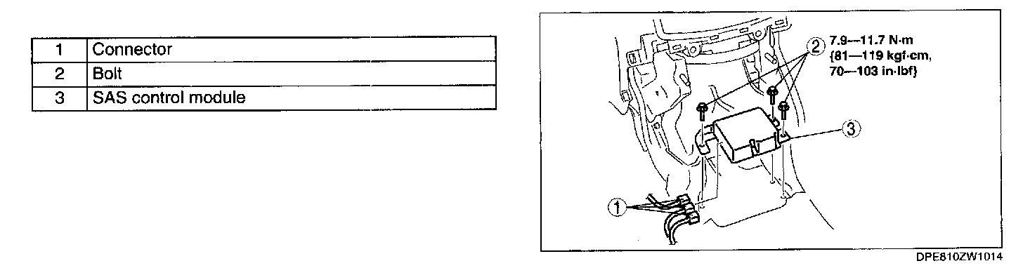 CAUTION: Handling the SAS control module improperly can accidentally deploy the air bag modules and pre-tensioner seat belt, which may seriously injure you.If configuration is not completed before removing the SAS control module, DTC B2477 will be displayed.
