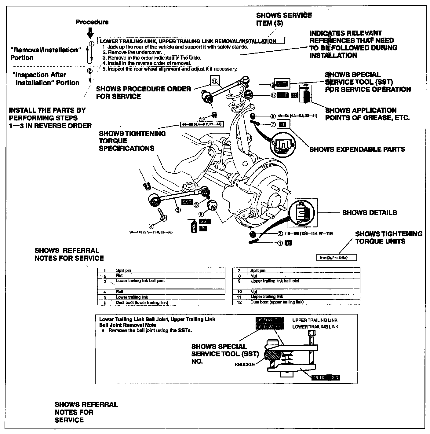 - Inspection and adjustment procedures are divided into steps. Important points regarding the location and contents of the procedures are explained in detail and shown in the illustrations.