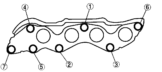 Tighten the exhaust manifold installation nuts in the order shown in the figure.