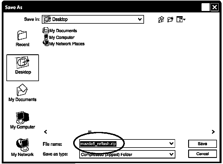 8. Navigate to the mazda5_reflash.zip file on the Desktop and open it.