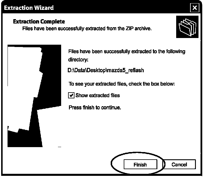 11. The extraction wizard will show the path and folder it will create (mazda5_reflash) on the desktop for the files. Click "Next" to continue.