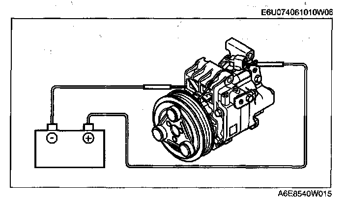 MAGNETIC CLUTCH INSPECTION [L3, AJ]1. Connect battery positive voltage to terminal A of magnetic clutch and ground to A/C compressor body.