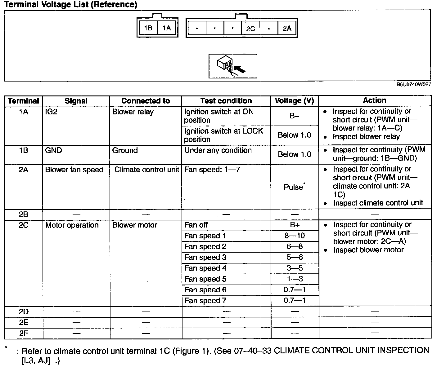 3. Measure the voltage at each PWM unit terminal and refer to the terminal voltage list.