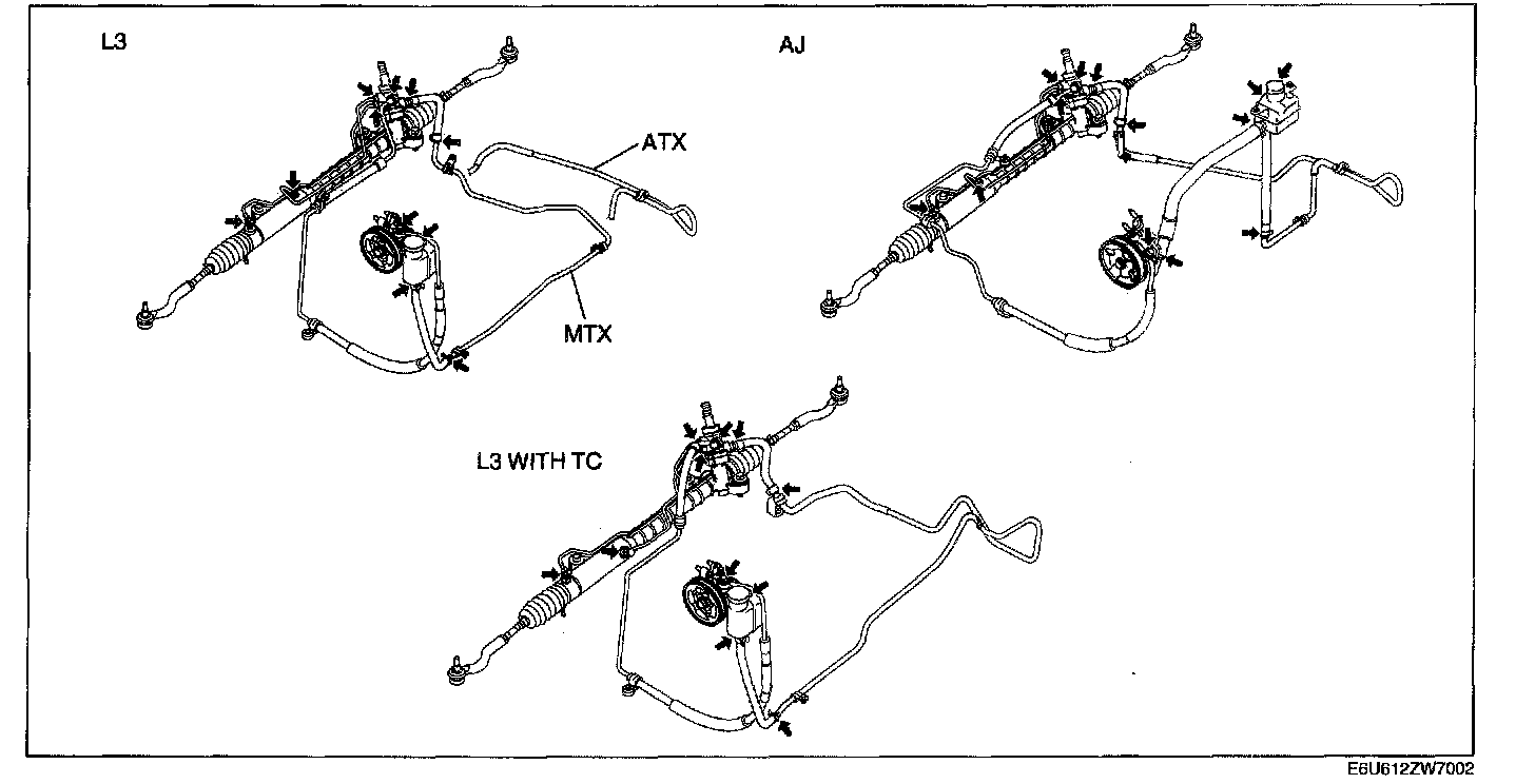 Home >> Mazda >> 2006 >> 6 L4-2.3L >> Repair and Diagnosis >> Maintenance >> Fluids >> Power Steering Fluid >> Testing and Inspection
