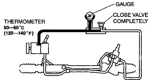 ^ If the valve is left closed for more than 5 seconds, the fluid temperature will rise excessively and adversely affect the oil pump.