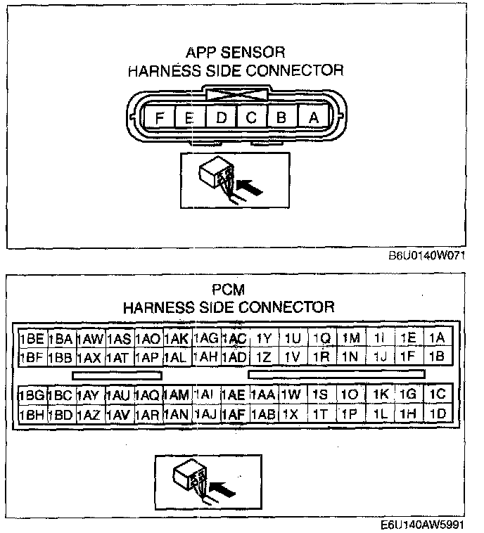 - APP sensor terminal E and PCM terminal 1AS