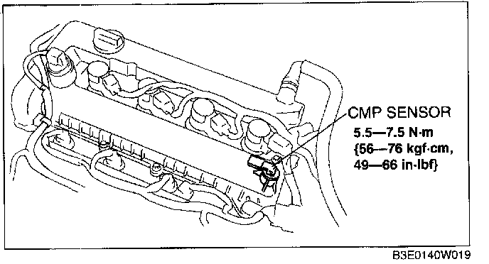 CAUTION: When replacing the CMP sensor, make sure there is no foreign material on it such as metal shavings. If it is installed with foreign material, the sensor output signal will malfunction resulting from fluctuation in magnetic flux and cause a deterioration in engine control.