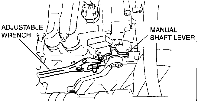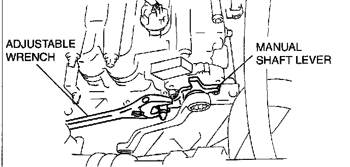 5. Set the adjustable wrench as shown to hold the manual shaft lever.