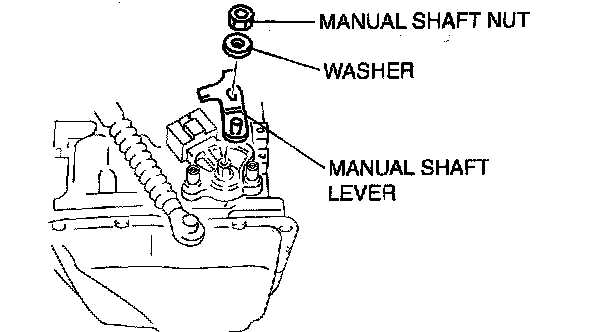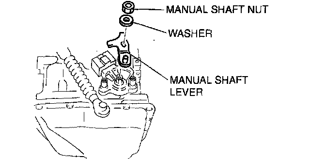 ^ Do not use an impact wrench. Hold the manual shaft lever when removing the manual shaft nut, or the transaxle may be damaged.