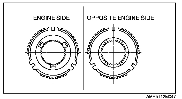 1) Install a new 1st/2nd clutch hub in the direction as shown in the figure.