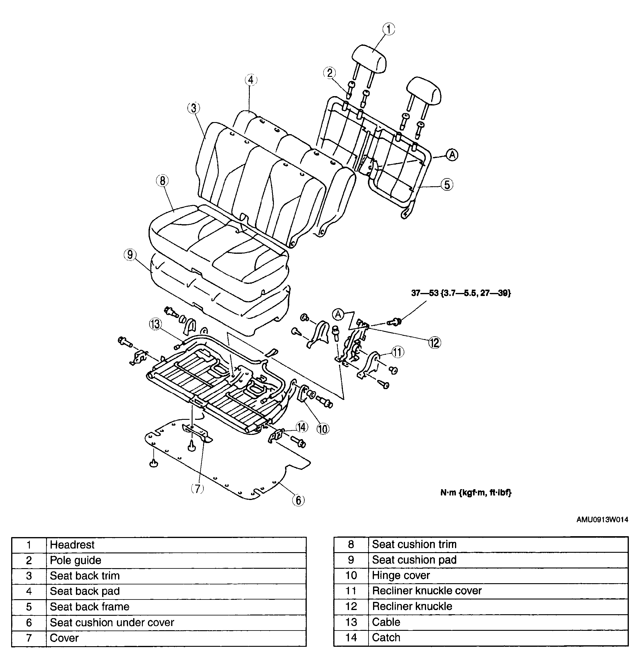 Fig 1: Exploded View Of Third-Row Seat With Torque Specifications