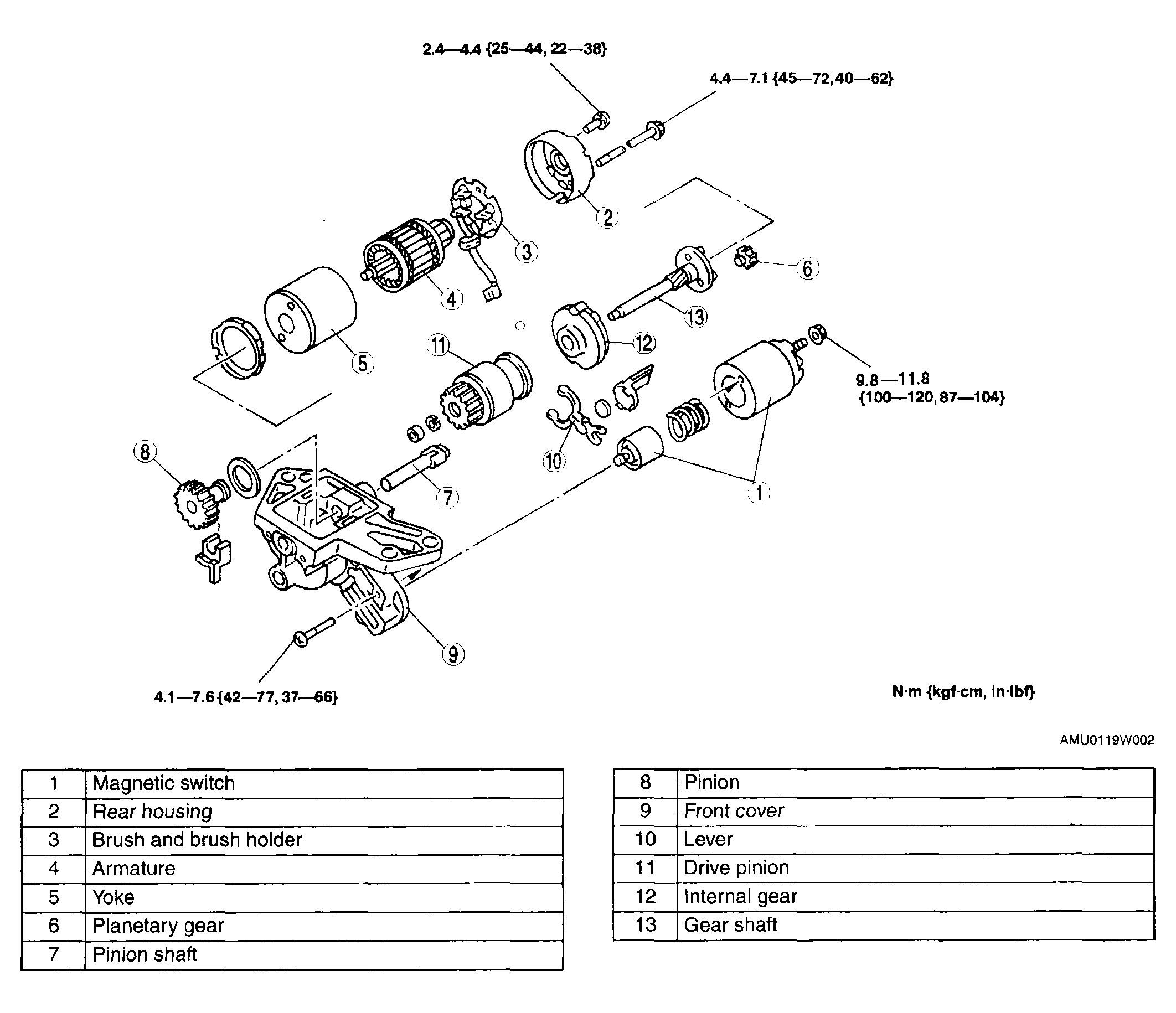 Fig 1: Exploded View Of Starter With Torque Specifications