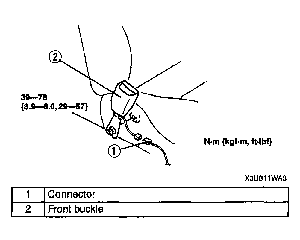 Fig 1: Removing/Installing Front Buckle With Torque Specifications