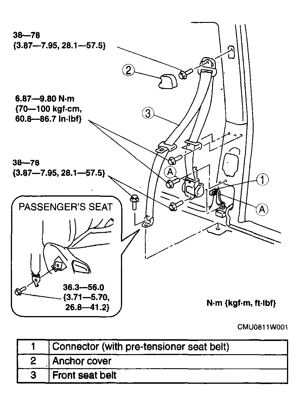 Front Seat Belt Removal/Installation [Two-Step Deployment Control System]