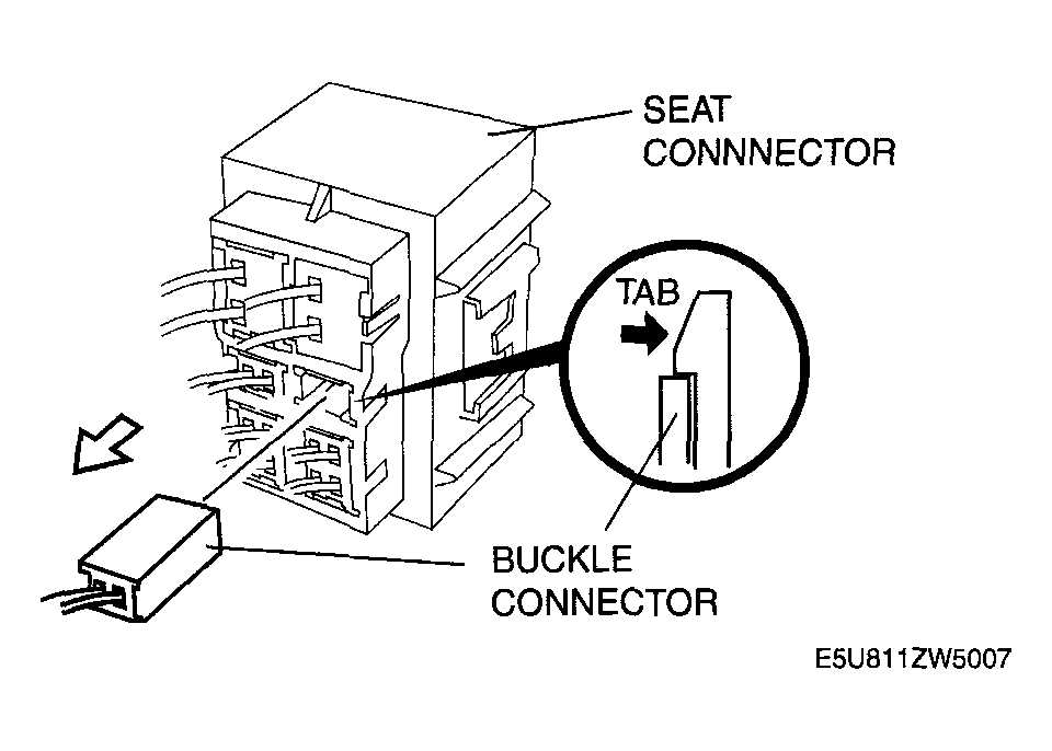 - Detach the tab as shown in Fig 1 and remove the connector from the seat connector.