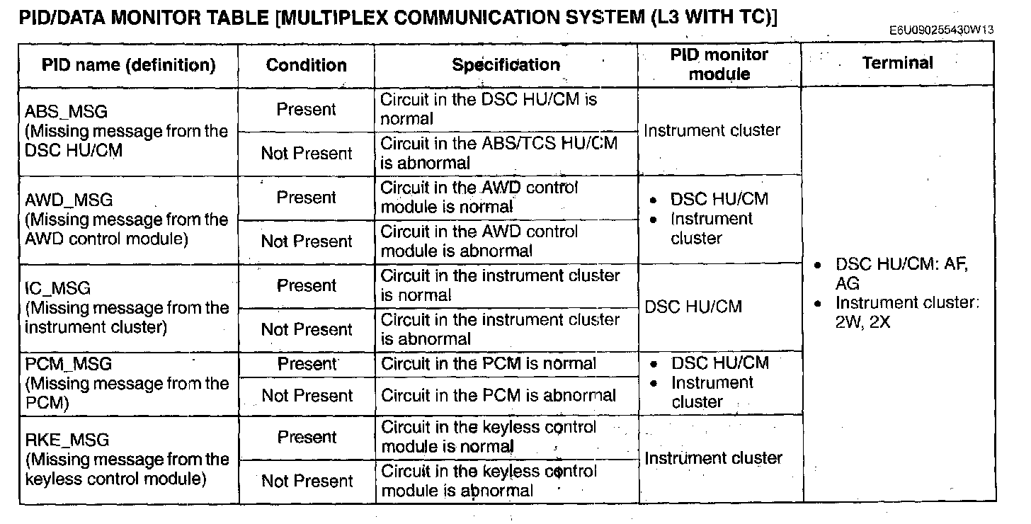 PID/Data Monitor Table [Multiplex Communication System]: