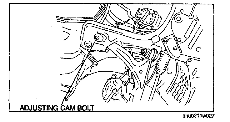 2. Rotate the adjusting cam bolt in either direction to adjust the caster.