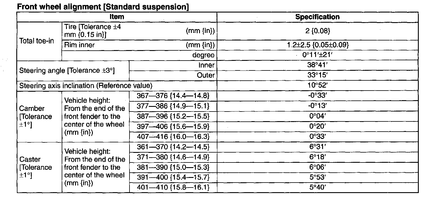 ^ Difference between the left and right dimension for camber and caster is within 1°.