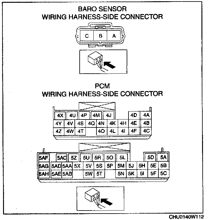 - If not within the specification even though the related wiring harnesses have no malfunction, replace the BARO sensor.