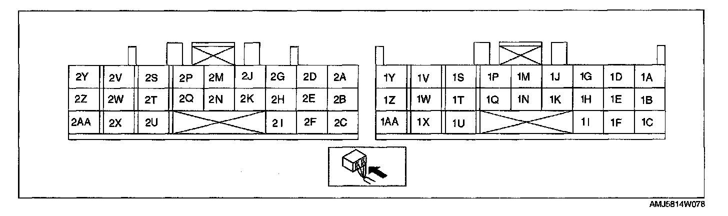 ^ Use the ground of terminal 2M and 2Q of the TCM when measuring terminal voltage, as an error may occur when connecting the negative circuit tester to ground.