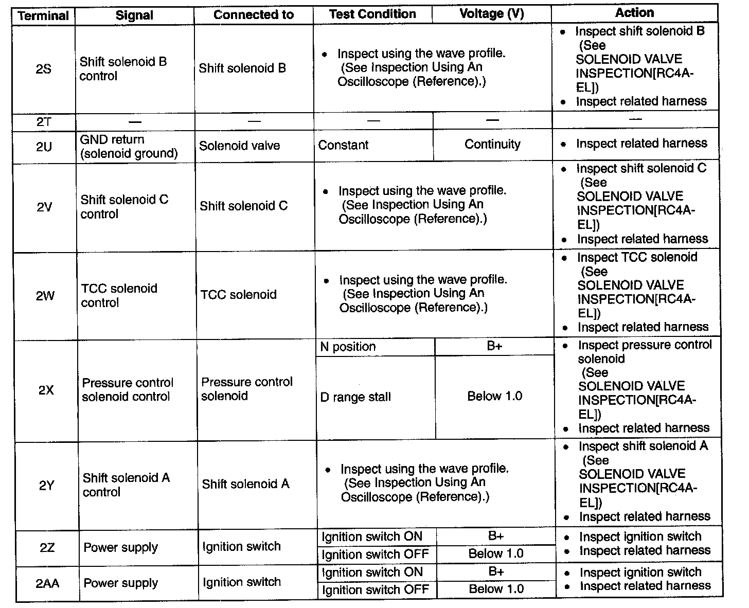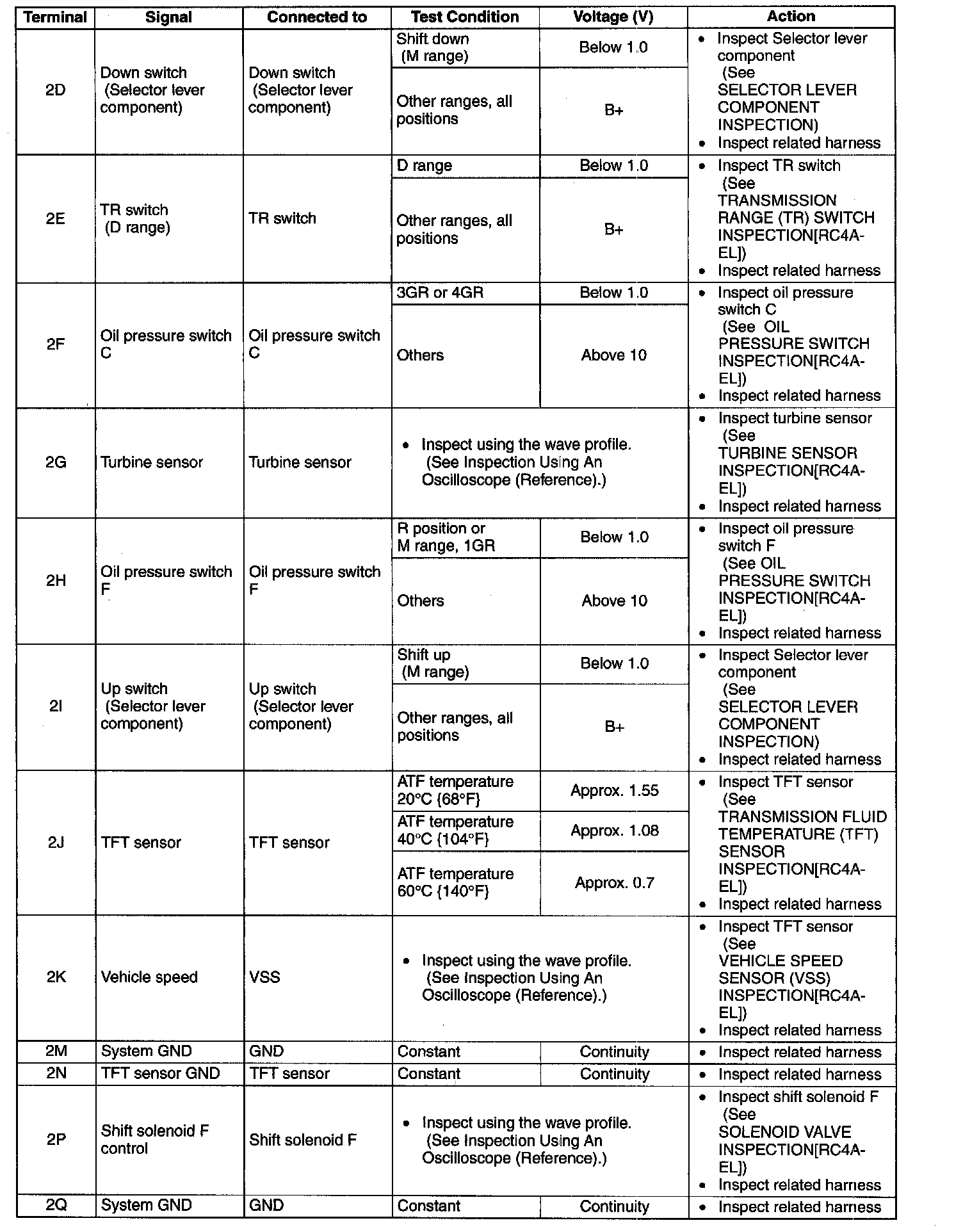 TCM INSPECTION [RC4A-EL]Terminal Voltage Table (Reference)