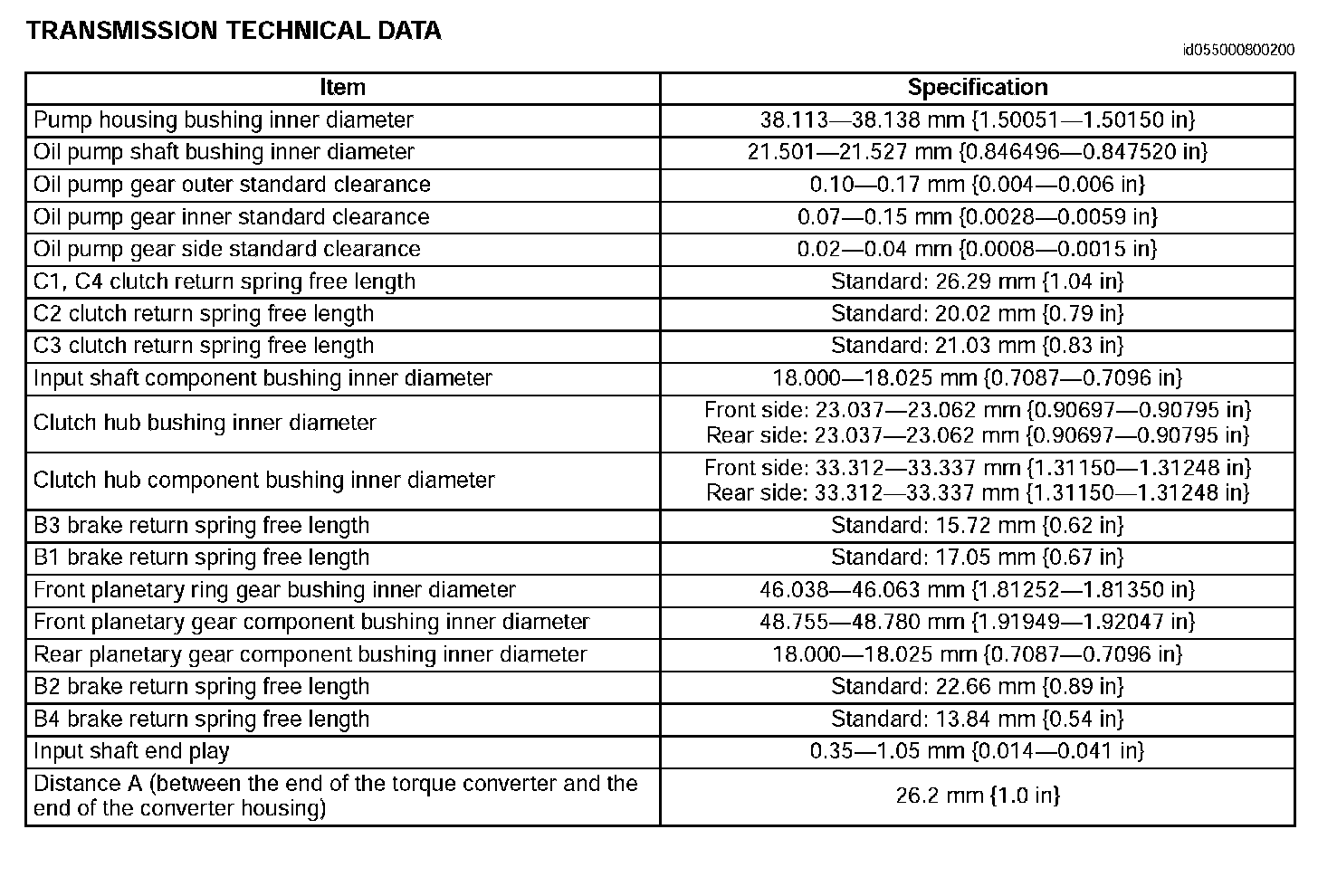 Transmission Technical Data:
