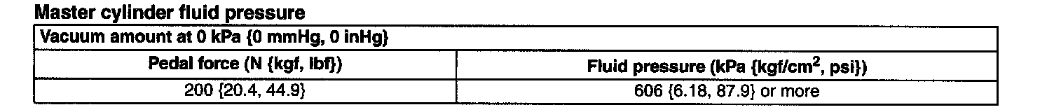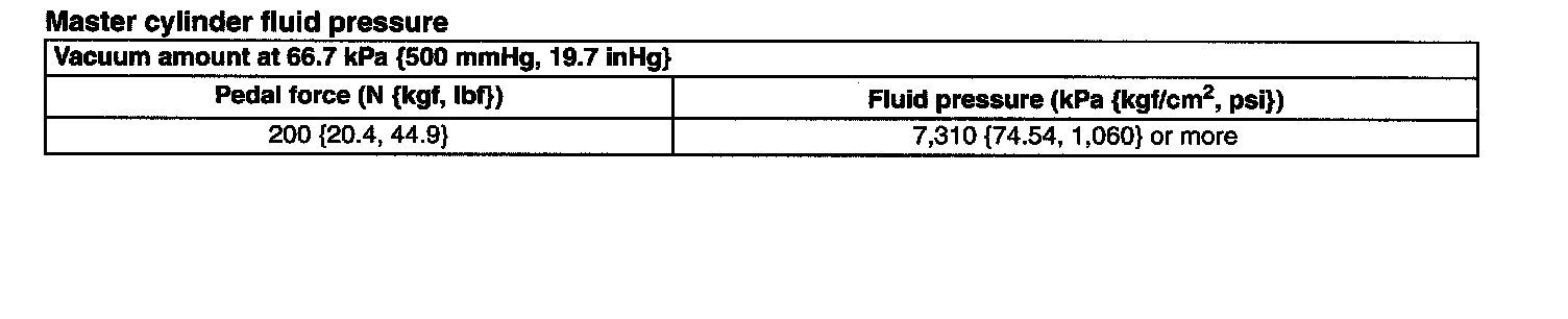 Master Cylinder Fluid Pressure: