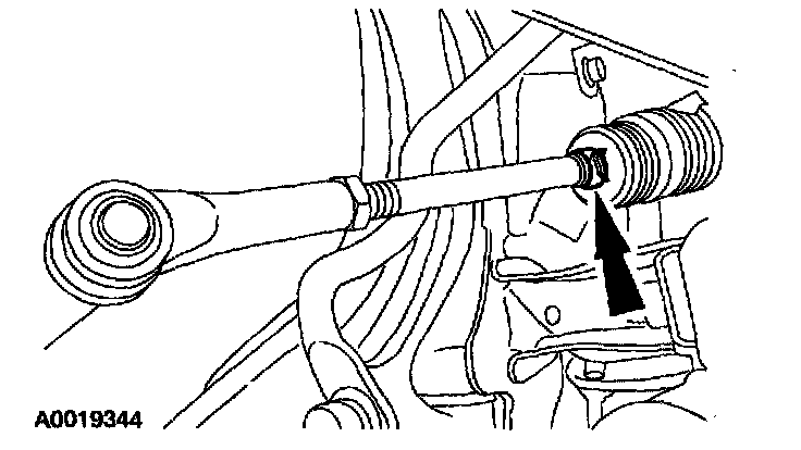 Caution: Hold the tie-rod end stationary with a wrench while tightening the nut, or damage to the boot can occur.