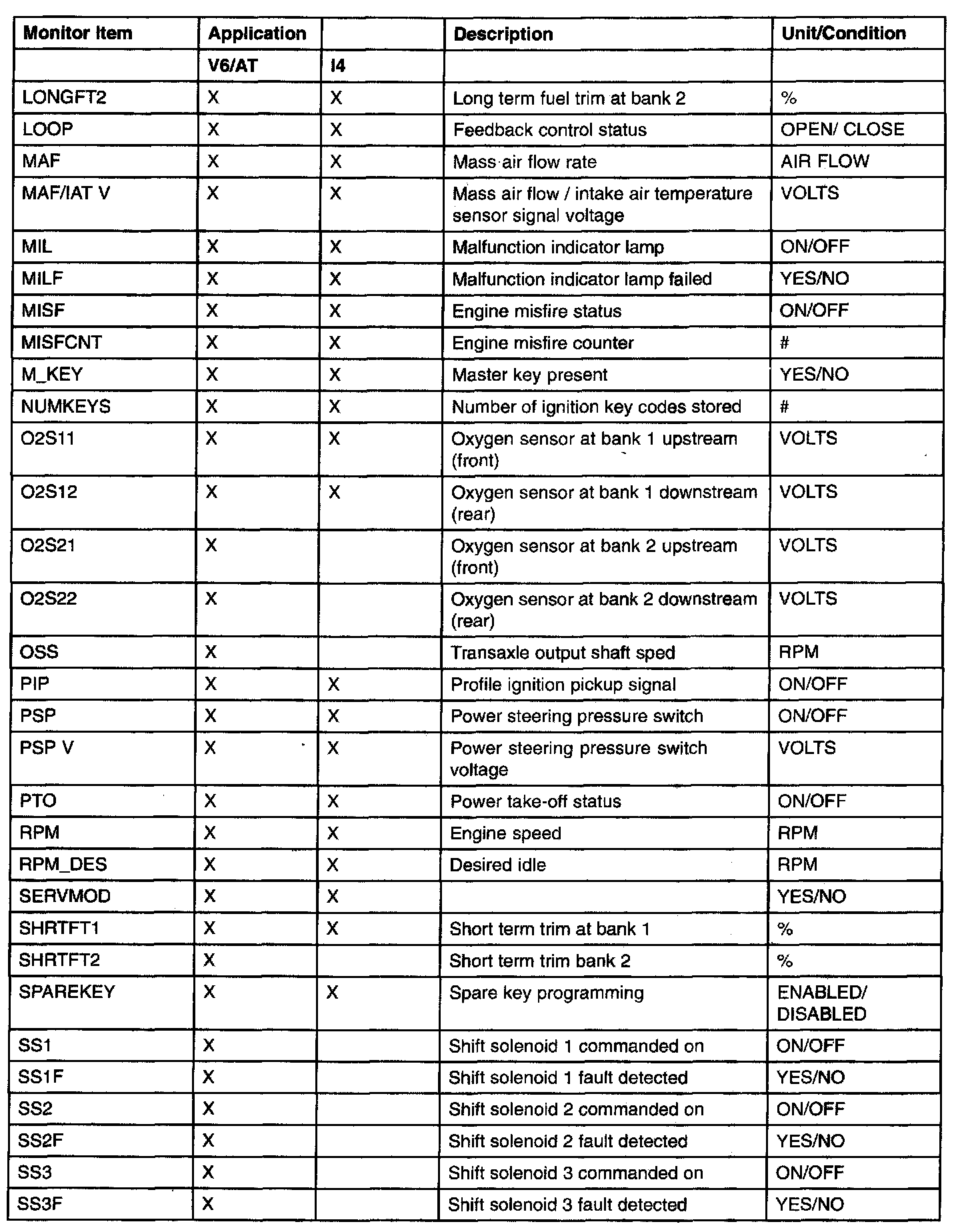 PID/DATA Monitor Item Table (Part 4):