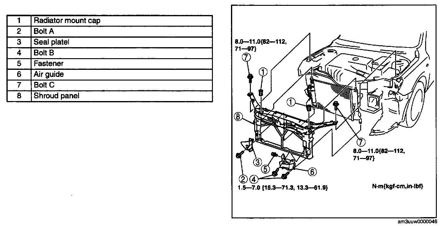 Home >> Mazda >> 2007 >> 3 L4-2.0L >> Repair and Diagnosis >> Body and Frame >> Radiator Support >> Service and Repair