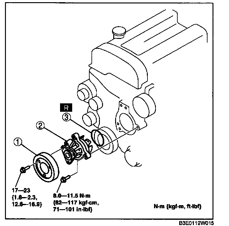 (2) 14 - 17 Nm (1.5 - 1.7 kgf-m, 10.4 - 12.5 ft-lbf)