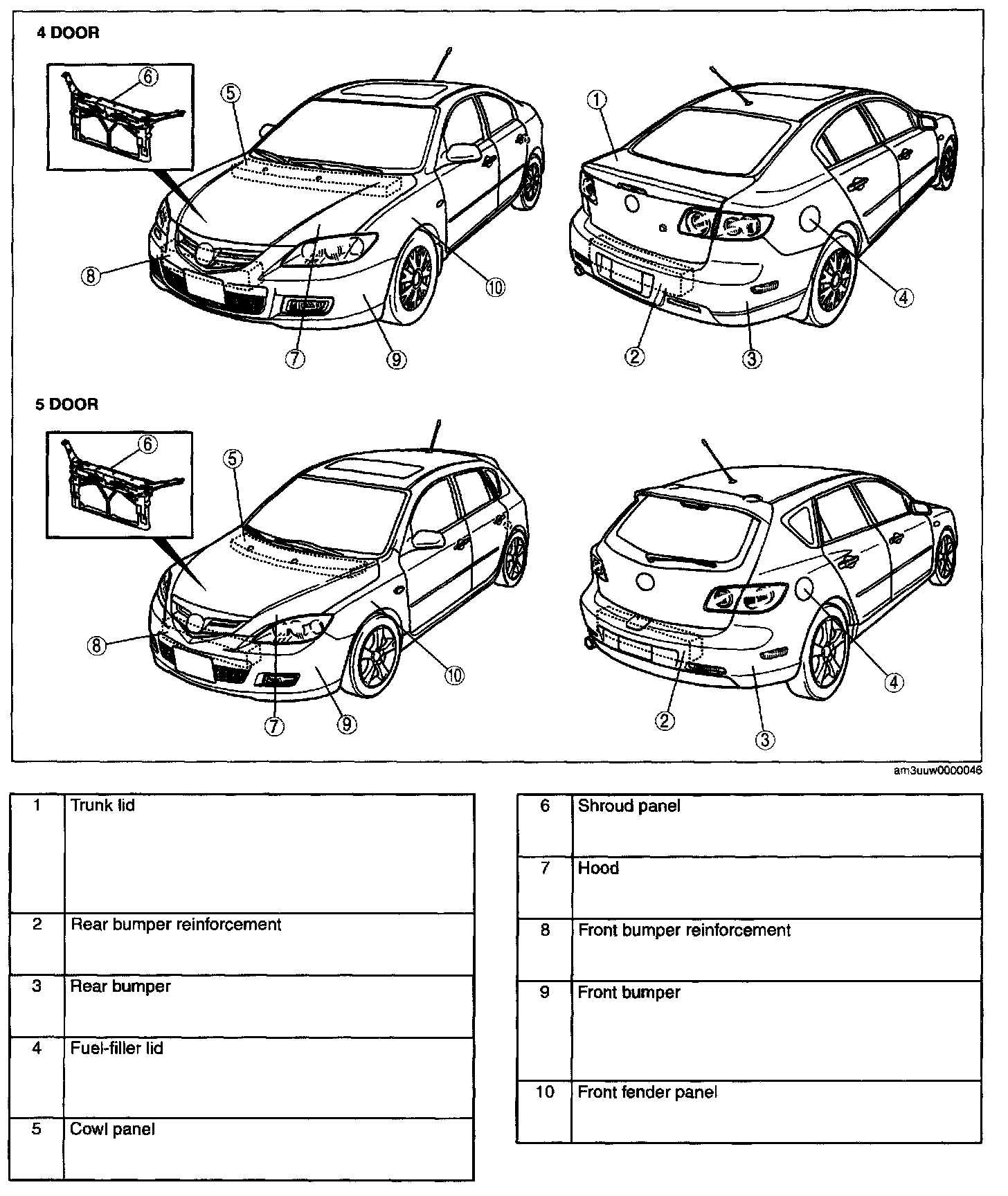 Body Panels Location Index: