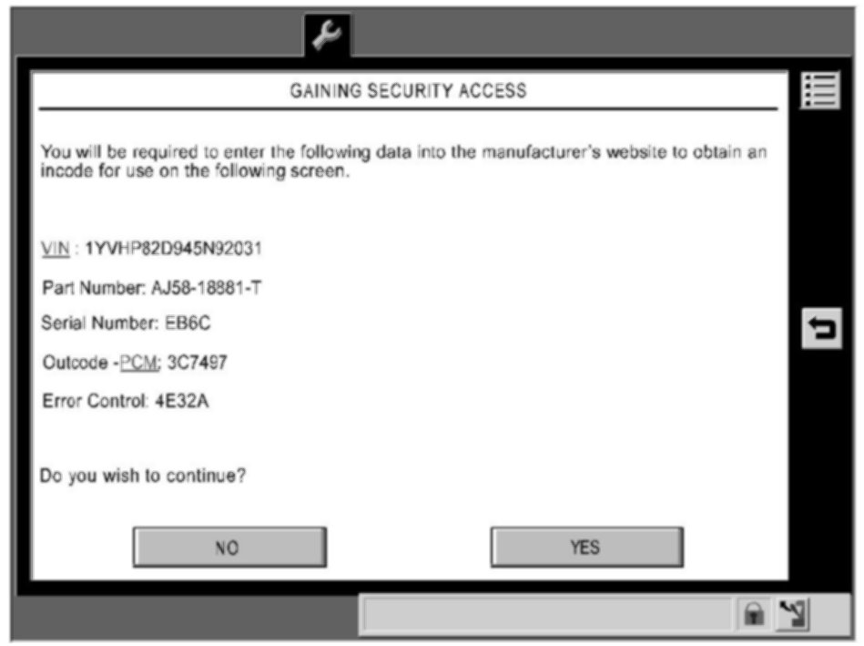 ^ In this sample, IDS/PDS tries to access PCM and RKE. In this case, you are required to provide VIN, Part Number and Serial Number shown on the screen and Outcode and Error Control for each module to obtain Incode for each module.