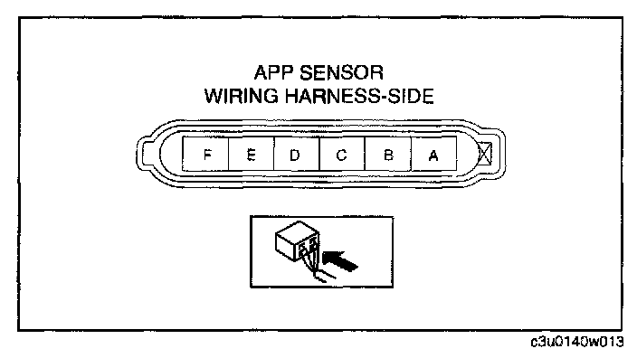 - APP sensor terminal E and power supply APP sensor terminal F and power supply