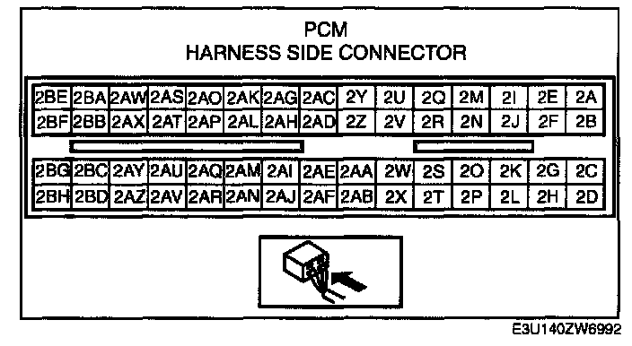 - CKP sensor terminal C and PCM terminal 2AQ*1,2T*2